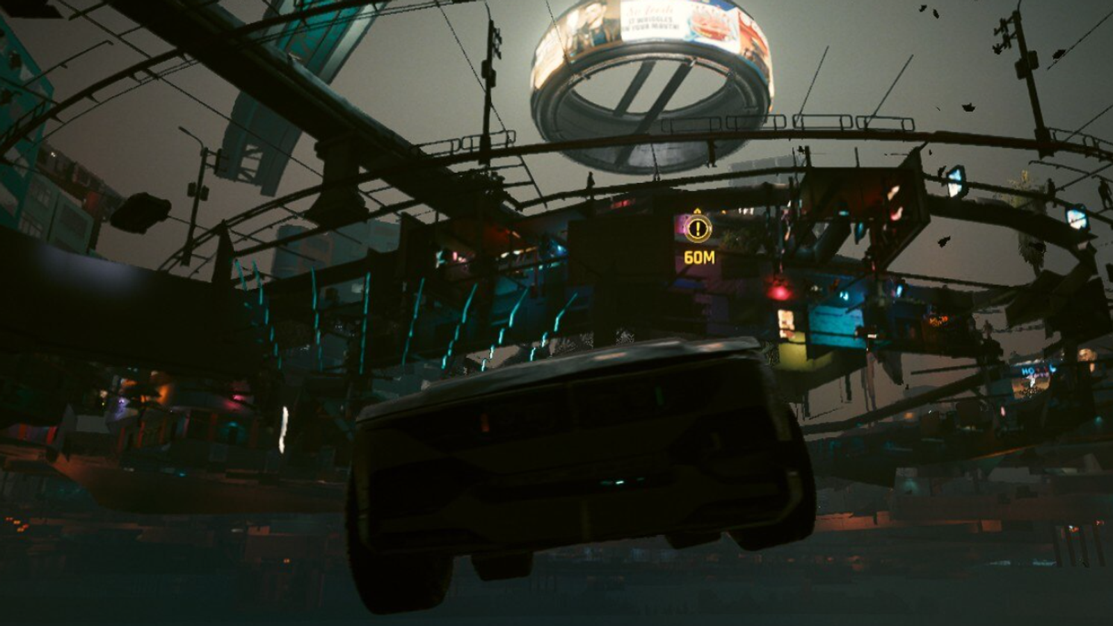 - Повреждённый полицейский автомобиль без колёс больше не будет патрулировать улицы Найт-Сити.