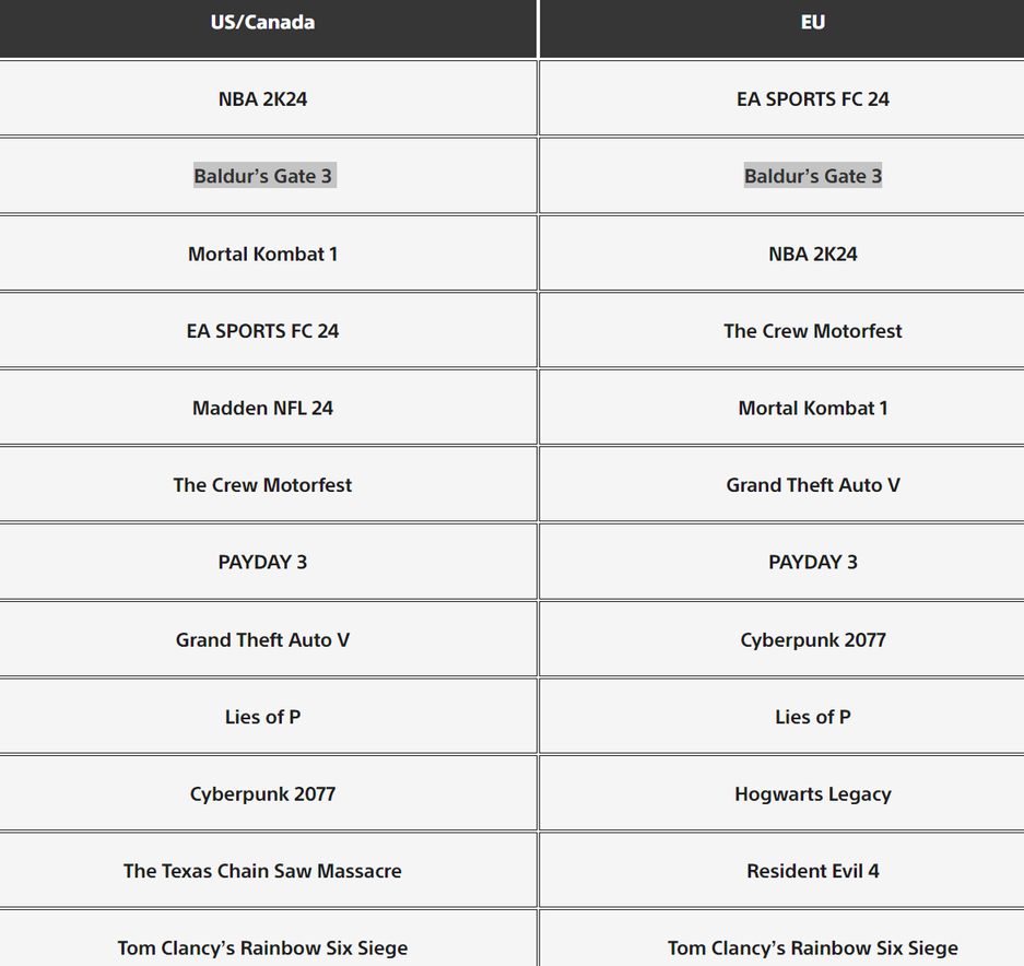 Sony опубликовала статистку самых загружаемых игр PlayStation Store в сентябре 2023 года: оказывается, Baldur's Gate 3 не стала лидером в США / Канаде или Европе.