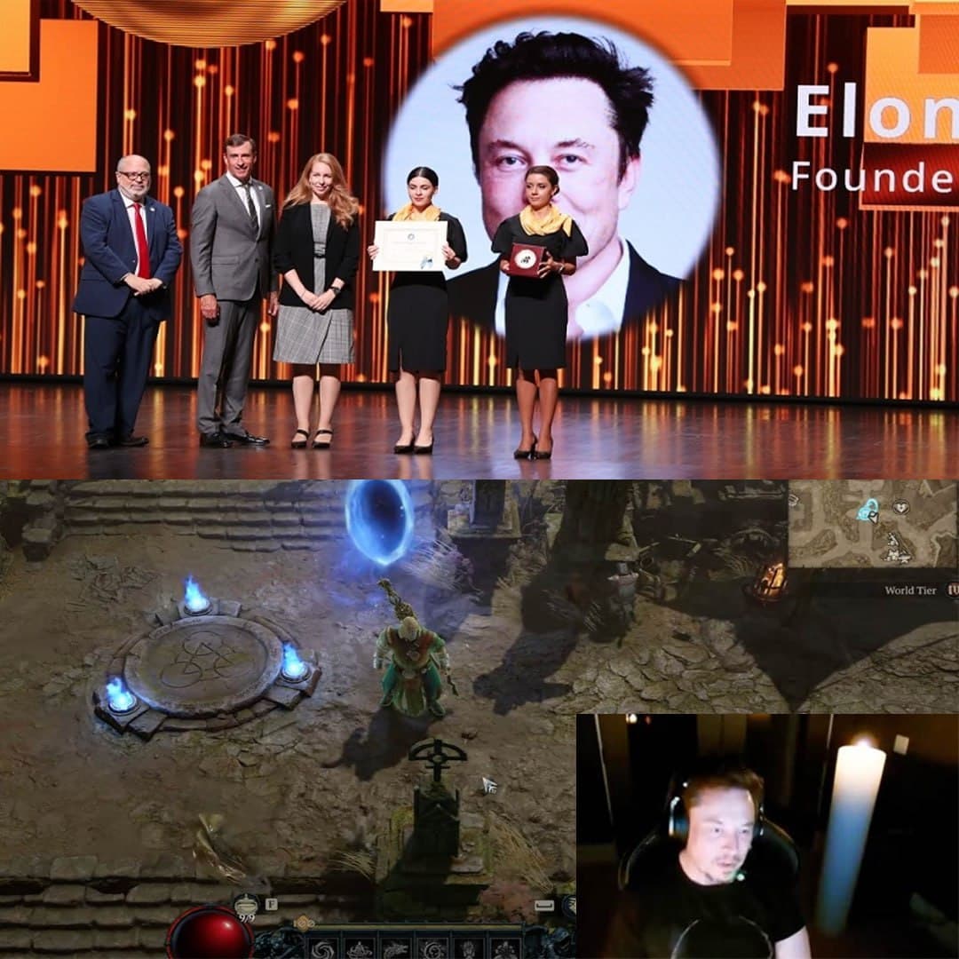 Однако Маск не явился получать награду, поскольку в этот день вел прямую трансляцию Diablo 4 в своей социальной сети X (некогда Twitter).