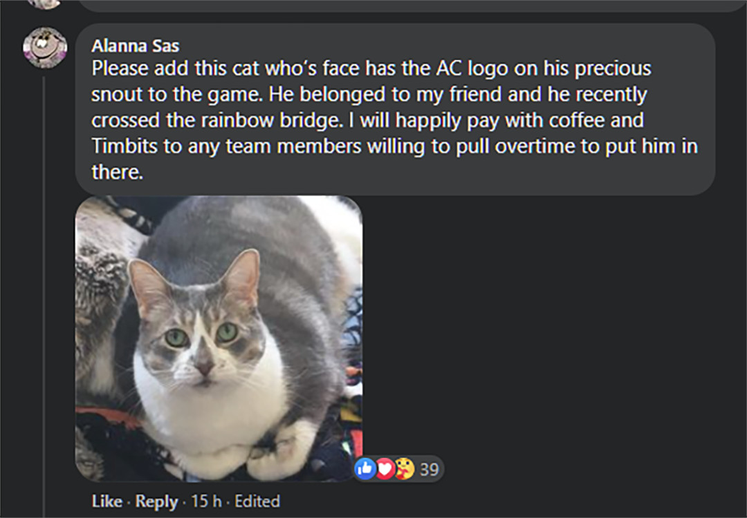 Стали распространять сообщение участника сообщества, который рассказывал о своём умершем питомце, фото с такой же характерной меткой на мордочке. Он предлагал добавить его в игру. Предполагается, что авторы Assassin's Creed Mirage выполнили пожелание.