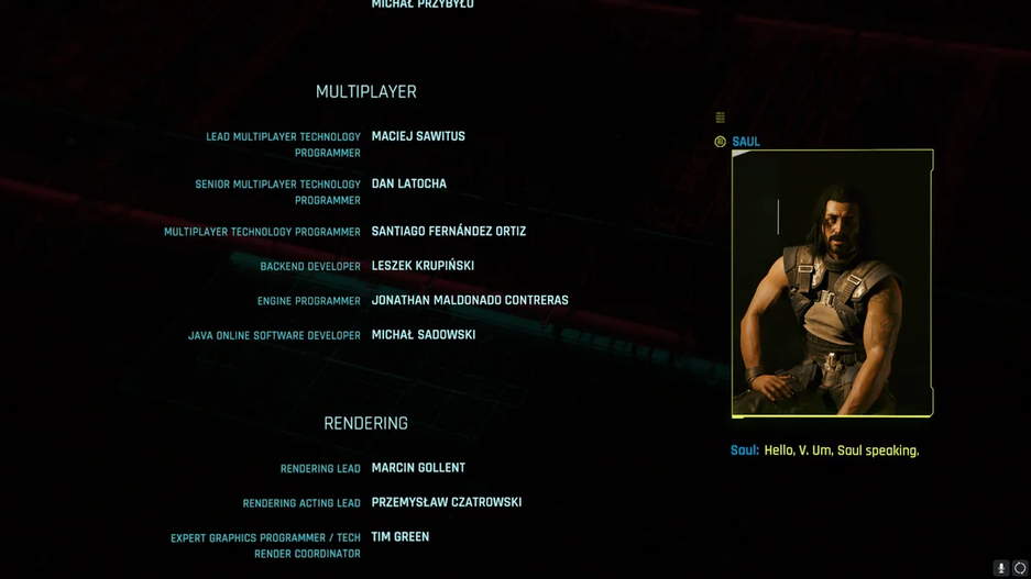 Тем не менее определённые отголоски мультиплеера можно найти. Поигравшие в Cyberpunk 2077 Phantom Liberty изучили титры игры и заметили раздел, посвящённый команде мультиплеера.