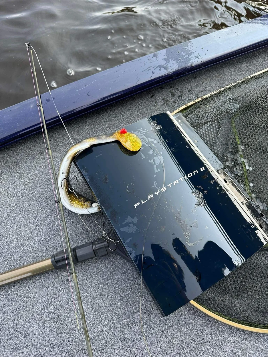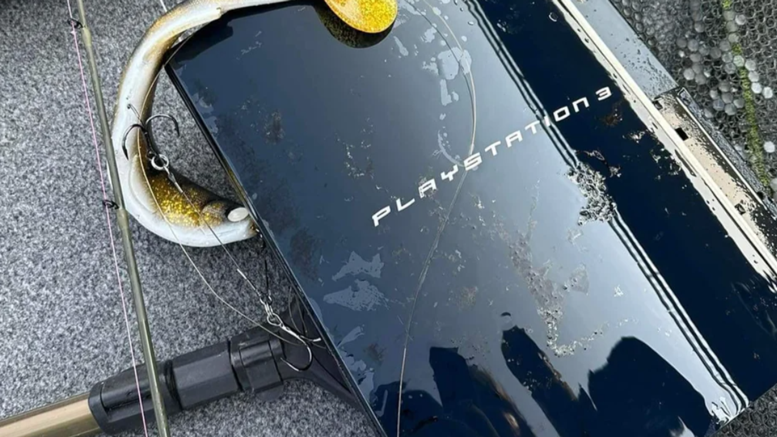 PlayStation 3 резвилась в воде и в какой-то момент попалась на крючок. Рыбак получил неожиданный улов