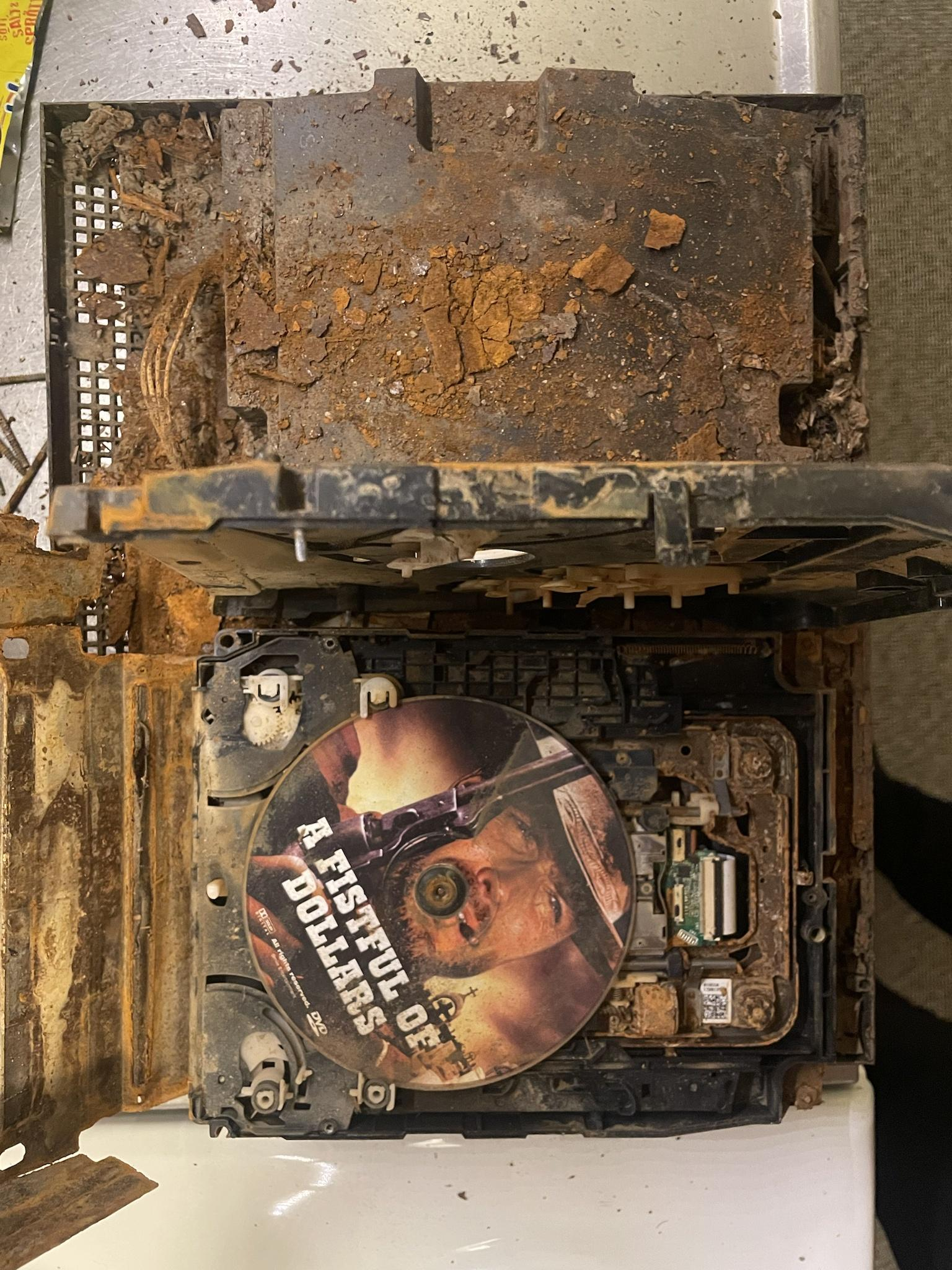 Дальнейшее вскрытие показало, что в эту PlayStation 3 был установлен диск: фильм с Клинтом Иствудом «За пригоршню долларов» (A Fistful of Dollars).
