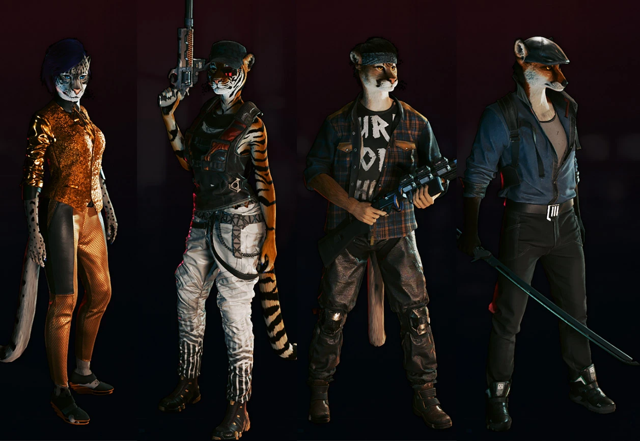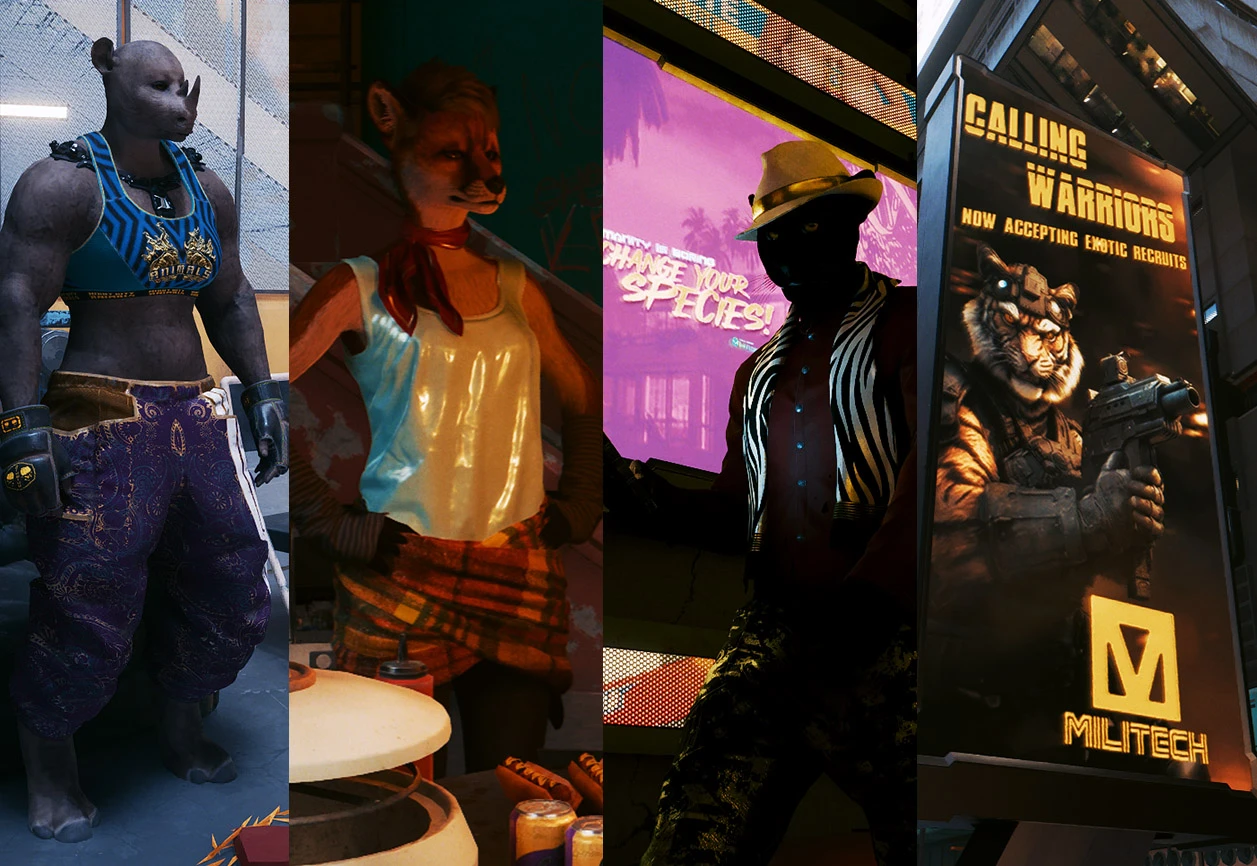 Разработчик CobaltOwl представил Biosculpted Exotics: это вполне каноничные образы, которые может примерить протагонист Ви (или NPC) — были представлены в настольной RPG Cyberpunk 2020. Согласно лору, такие «фурри» являются людьми, придавшими себе черты животного с помощью различных операций.