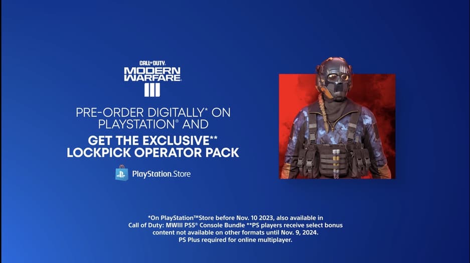 Комплект можно будет приобрести только через официальный магазин самой PlayStation, и он будет включать не только Modern Warfare 3, но и эксклюзивный бонусный набор, в который войдет оперативник Элоди «Lockpick» Мишо, чертеж оружия и несколько других косметических предметов.