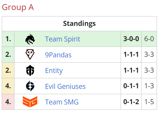На групповой стадии Team Spirit закрыла первый день со счётом 6-0.