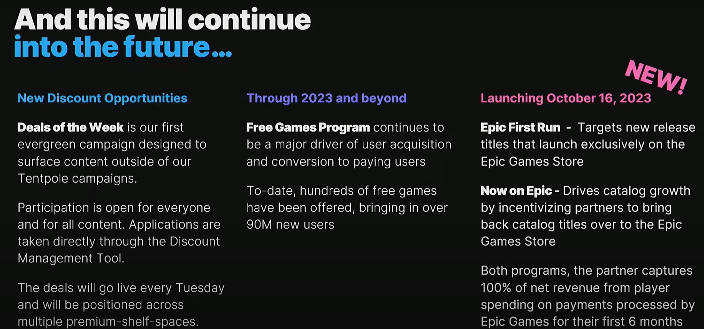 Epjc подтвердила, что раздача бесплатных игр в Epic Games Store продолжатся. Судя по слайду презентации, данная программа привлекла в сервис 90+ миллионов пользователей.