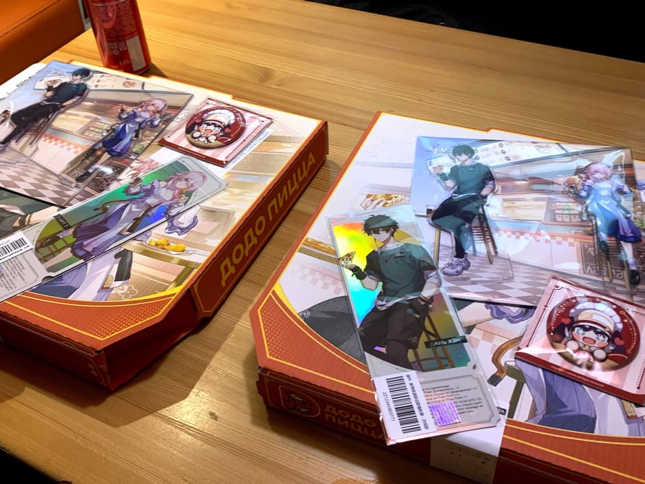 В России стартовал коллаб Honkai Star Rail и ДоДо Пицца. За заказ набора вкусностей дарят подарки: фирменный голографический билет, значок и стенд коллаборации.