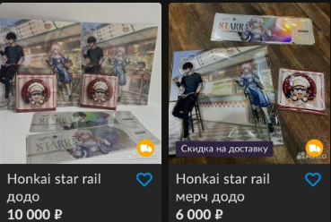 На Авито уже появились объявления о продаже мерча Honkai Star Rail х ДоДо Пицца. Порой ценник переваливает за 10 тысяч рублей. Встречаются и более скромные предложения за 2-7 тысяч, с возможностью доставки по РФ.