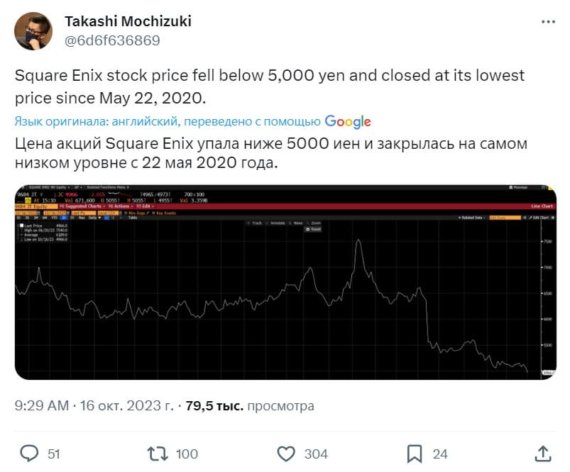 Но у японского разработчика и издателя возникли проблемы: цена акций Square Enix упала до минимума мая 2020 года. В последние месяцы у разработчика были проблемные месяцы, что подтвердил фондовый рынок.