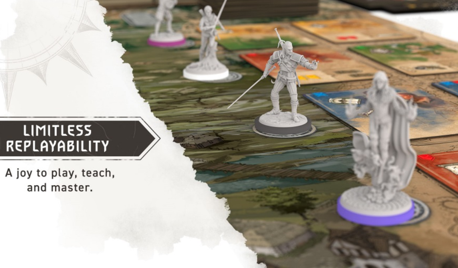 The Witcher Path of Destiny рассчитана на 1 – 5 игроков, в наличии коллекция карточек и фигурки персонажей, вроде Геральта и Йеннифер.