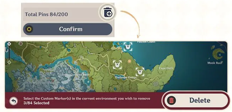 Подтвердили оптимизацию функций карты. Максимальное число меток на карте Genshin Impact увеличат до 200. Также подготовили функцию группового удаления меток, чтобы было проще очистить карту от лишних.