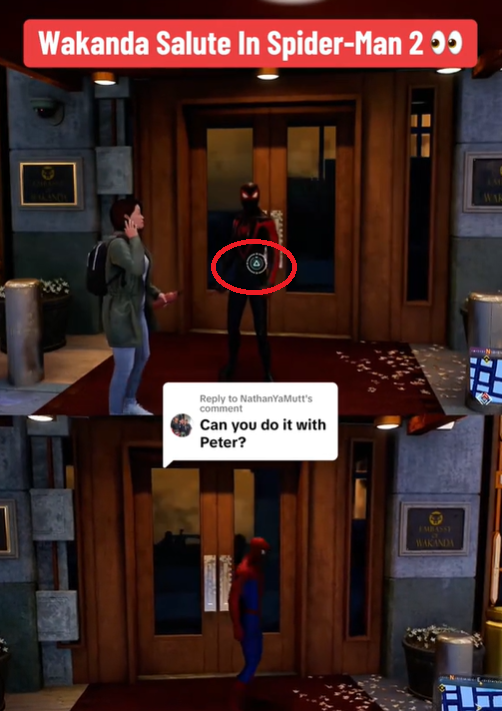 Дело в том, что в открытом мире Marvel's Spider-Man 2 у посольства Ваканды Майлз Моралес может выполнить жест-пасхалку, а вот Питер Паркер — нет.
