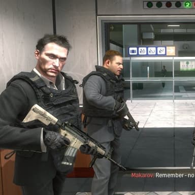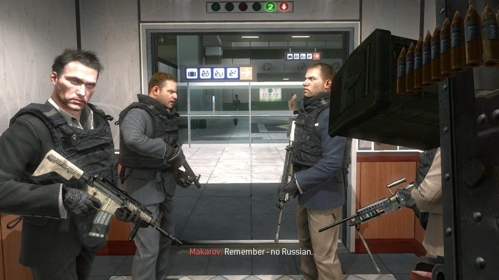 В «No Russian» игрок в роли агента ЦРУ под прикрытием внедрился в группу русских националистов, возглавляемую Владимиром Макаровым. Чтобы завоевать доверие, герой должен принять участие в теракте в российском аэропорту. Лидер приказал не говорить по-русски – теракт будет выглядеть так, будто его совершили американцы. Игроку не обязательно стрелять в мирных жителей, но такая возможность есть.