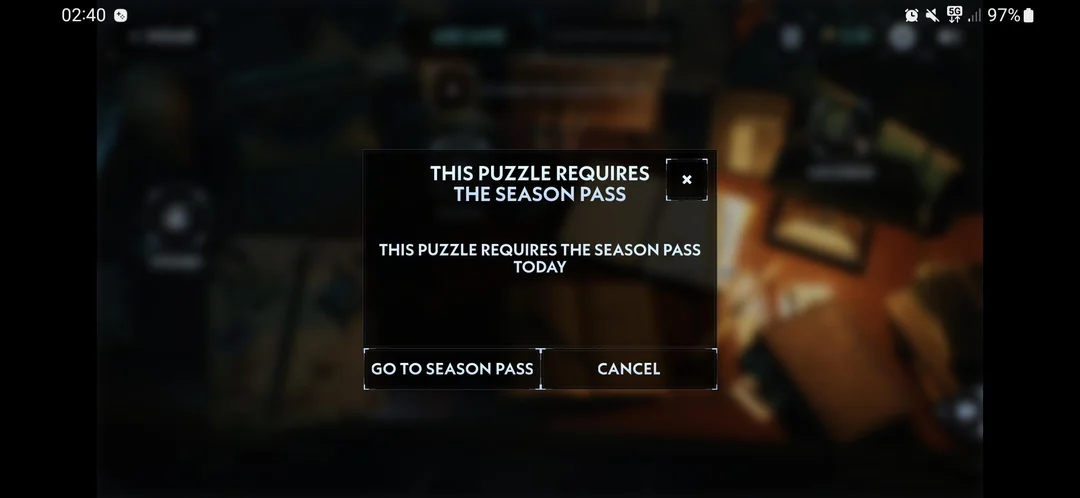Всё же вошедшие в игру вкушают все прелести монетизации: игрок хотел решить головоломку, чтобы получить Очки влияния, а я ему предложили купить сезонный пропуск (он даёт доступ к дополнительным мини-играм).