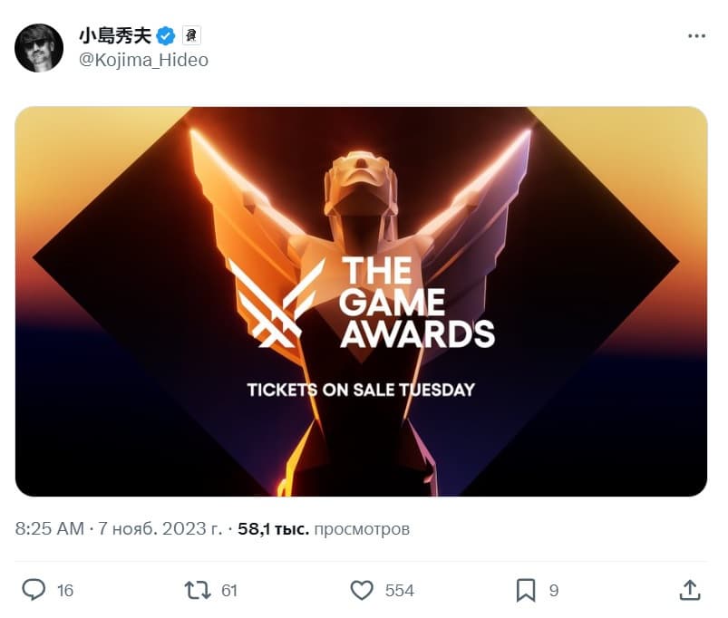 Но, похоже, Death Stranding 2 представят на церемонии The Game Awards. Хидео Кодзима явно хочет, чтобы его подписчики следили за торжественным мероприятием, которое назначено на начало декабря.