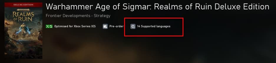 Стратегия Warhammer Age of Sigmar: Realms of Ruin, разрабатываемая студией Frontier Developments, получит русскую локализацию на консолях Xbox в виде субтитров и интерфейса, но только в более дорогих изданиях Deluxe и Ultimate. Не исключено, что это ошибка магазина Microsoft, и за русский язык не придется переплачивать.