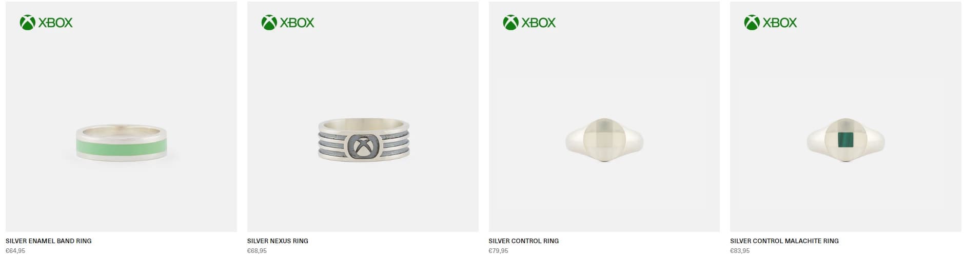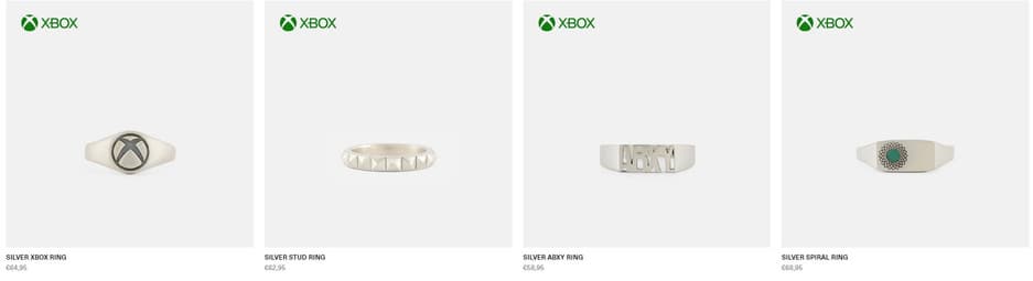 Коллекция SergeDeNimes x Xbox уже в продаже и состоит из 15 серебрянных колец и ожерелий. Цены от 65 до 80 евро. Внешний вид разный – с логотипами, буквами «Х» и «АBXY», геймпадом и другими узнаваемыми составляющими.
