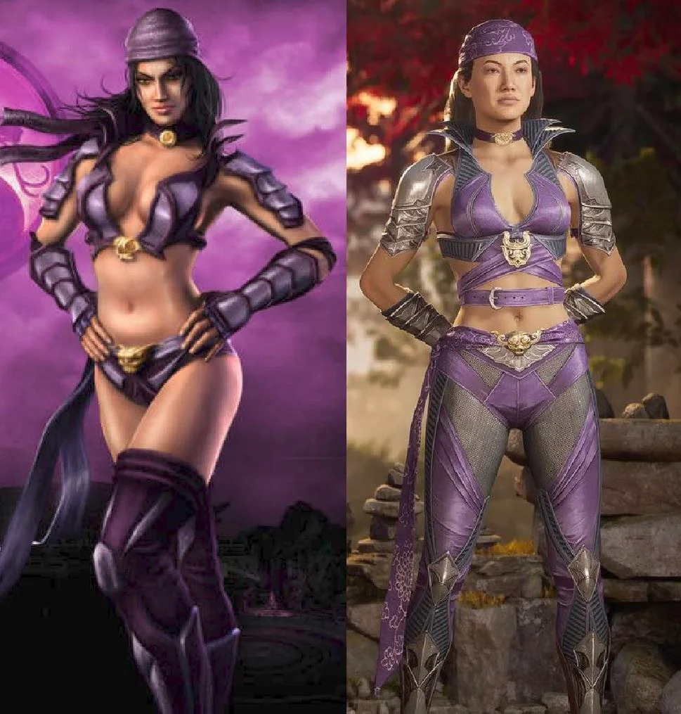 Декольте разработчики Mortal Kombat 1 сохранили, но животик чуть прикрыли, а также дали девушке штаны, которые не позволяют рассмотреть бёдра. Даже сторонники более скромных нарядов не принимают такой дизайн — считают, что героине следовало выдать шорты.