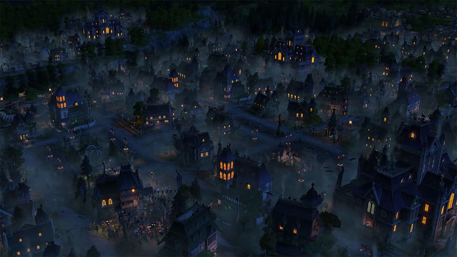 Есть и соответствующие облики зданий (больницы и паба), позволяющие создать город, напоминающий Готэм-сити, особенно в ночное время. Множество других объектов: мертвые деревья, мастерские, соборная площадь, каменная скамейка, черные ворота и альтернативные костюмы для жителей.
