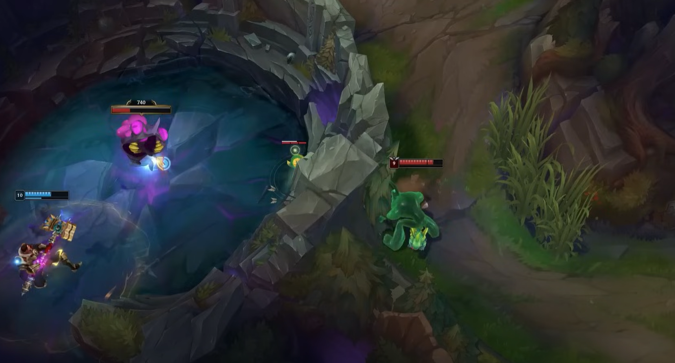 В League of Legends уже бывали глобальные изменения, но в этот раз Riot Games особенно сильно взялась за карту. Например, локация с Бароном Нашором преобразились (сам Нашор жутковат) — похоже, что кроме Нашора и Герольда здесь можно будет встретить и других обитателей.