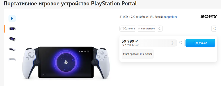 Стоимость PlayStation Portal в DNS составляет 39 999 рублей. Для сравнения, всё в том же DNS полноценная консоль прошлого поколения PlayStation 4 на 500 ГБ стоит столько же.