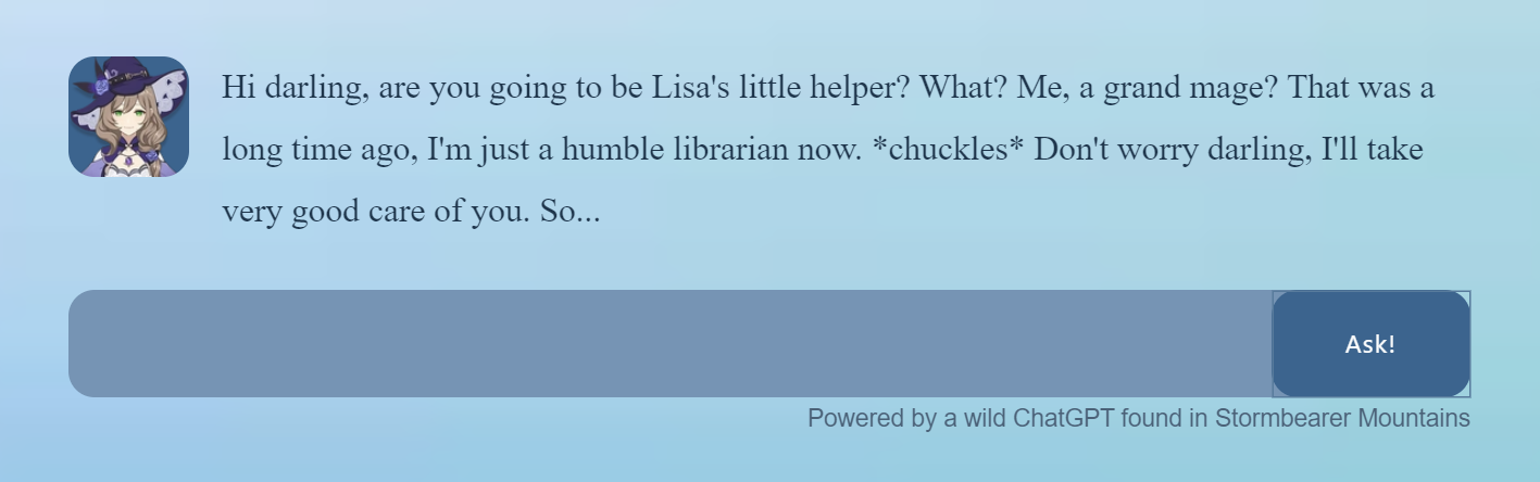Поддержку на сайте оказывает бот LisaGPT. Работает на базе «дикого ChatGPT», обнаруженного в Stormbearer Mountains — это локация из Genshin Impact.