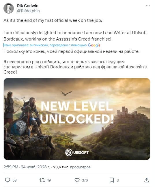 Ubisoft Bordeaux приняла на работу Рика Годвина в качестве ведущего сценариста студии. Согласно последнему сообщению в Twitter, он работает над франшизой Assassin's Creed, что намекает на ещё одну игру от этого разработчика.