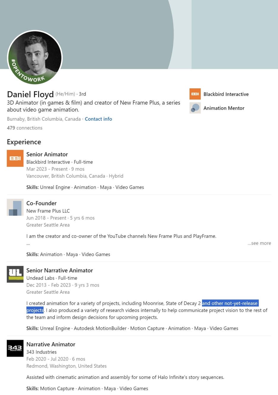 Аниматор Дэниел Флойд покинул команду Microsoft в начале 2023 года, но недавно обновил аккаунт на LinkedIn, где сообщил о работе над пока неанонсированной игрой. К моменту ухода Флойда из студии Undead Labs уже давно подтвердила работу над State of Decay 3, так что, похоже, разработчик занялся созданием ещё одной игры.