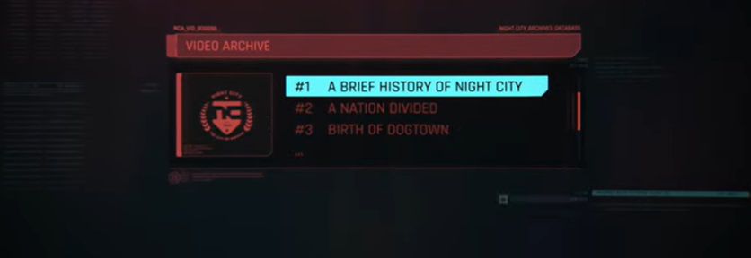 В первом файле (эпизоде) CDPR показали краткую историю Найт-Сити, города из Cyberpunk 2077: основание, переломный момент и перерождение, когда мегакорпорации во главе с «Арасакой» решают покончить с анархией — начинается бой с бандитскими группировками.