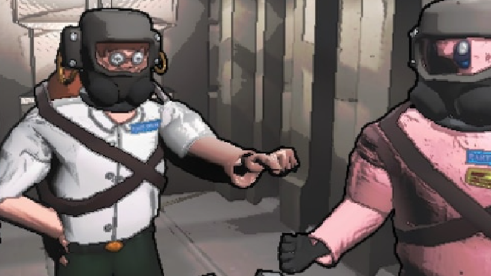 - Добавили баллончик с краской, химические колбы и маски.