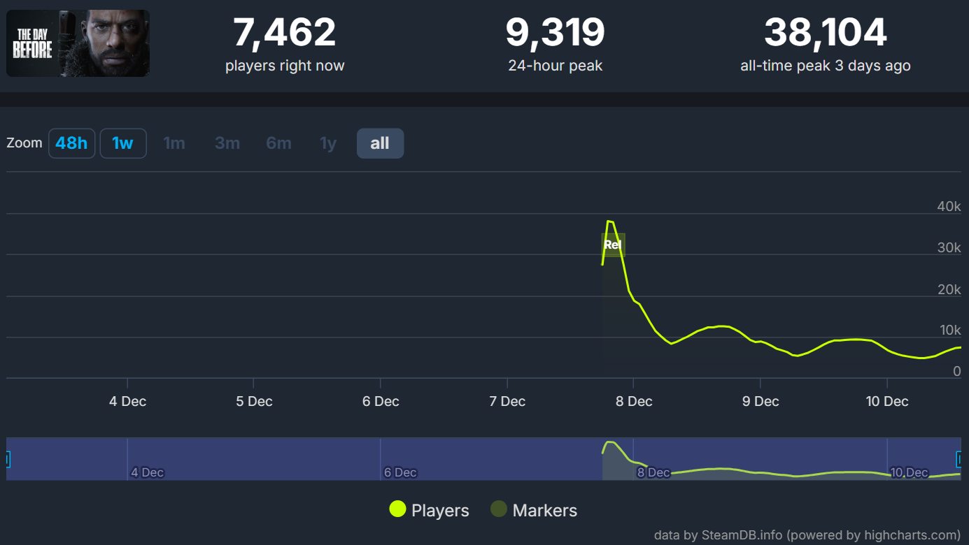После запуска The Day Before 7 декабря заметен резкий спад онлайна.