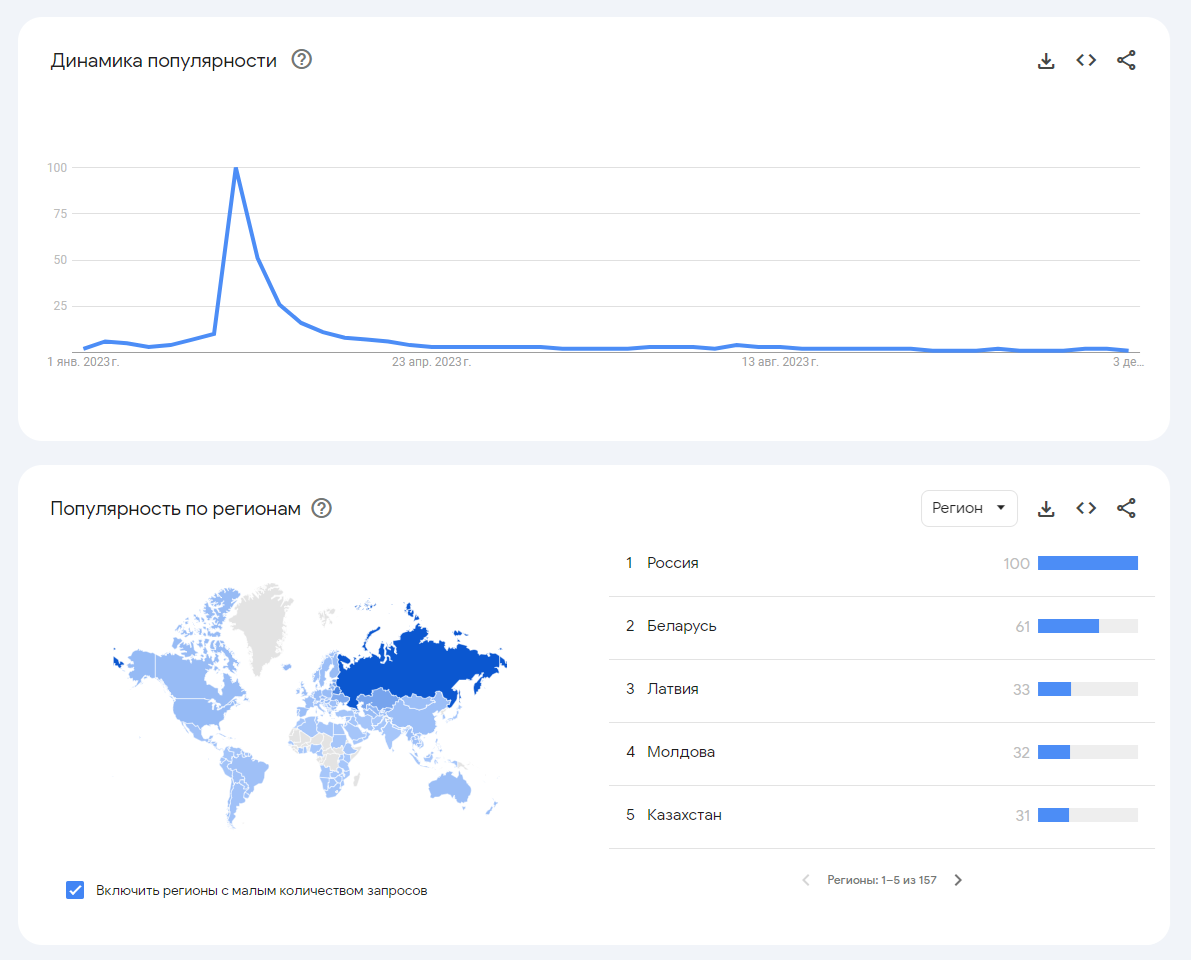 Получился следующий список самых популярных игр за 2023 год (используются данные глобального поиска):
