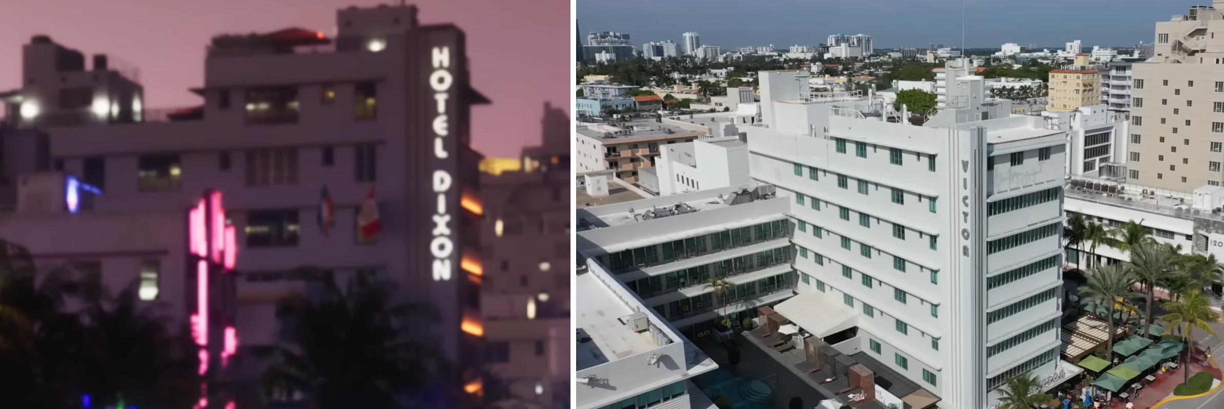Rockstar Games внесла некоторые изменения в локации для GTA 6, но узнаваемые черты легко угадываются. Блогер обратил внимание на примечательное совпадение: в ролике можно было увидеть «Hotel Dixon», в реальности оно называется «Victor», а архитектора здания зовут L Murray Dixon.