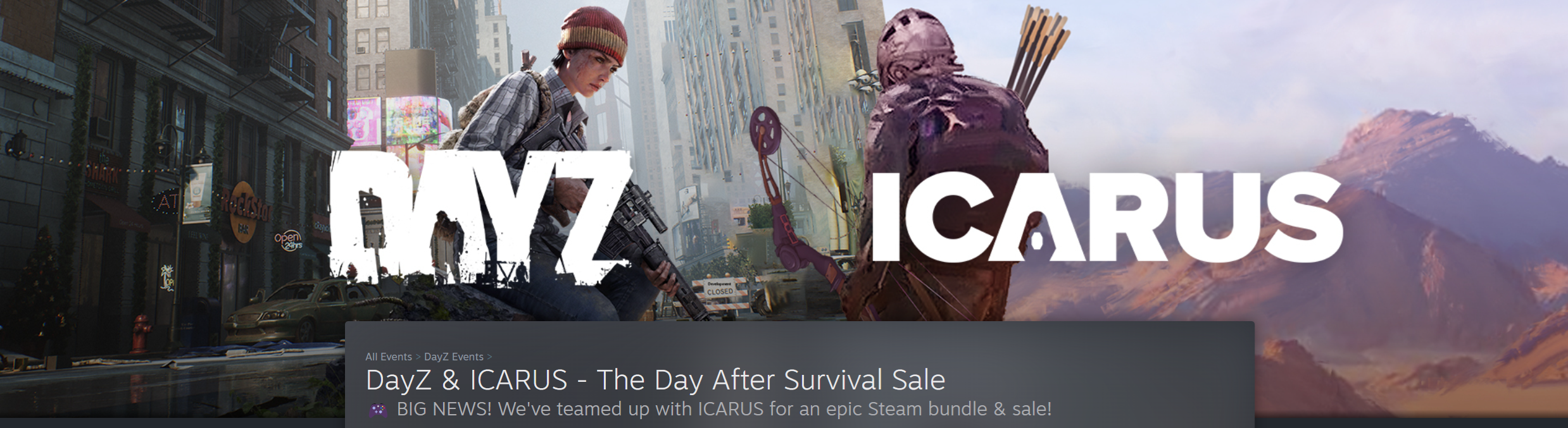 Дело в том, что она получила название «The Day After Survival Sale», явно отсылающее к провальному творению Fntastic. В ней участвует DayZ, а также Icarus — сформировали набор из двух игр.