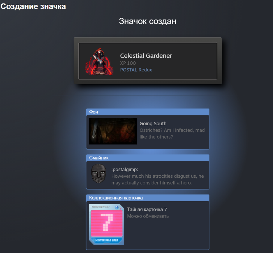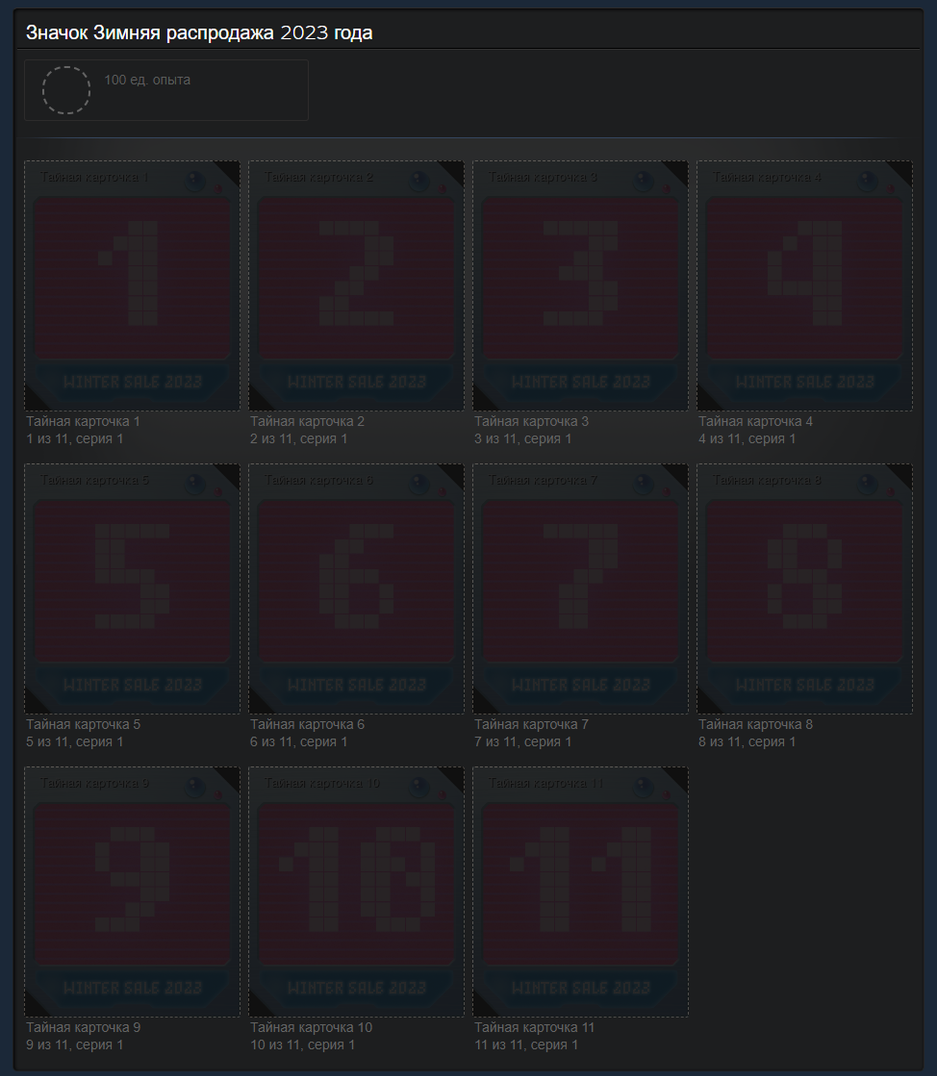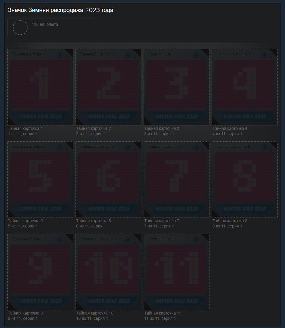 Коллекционные карточки из Winter Sale 2023, прогресс сбора можно отслеживать по ссылке: