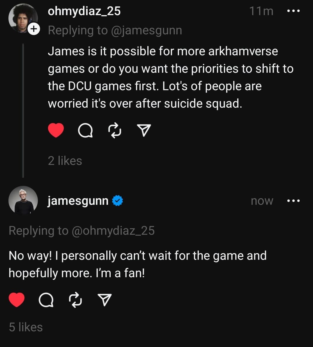 Ганн также отметил, что является большим фанатам игр Rocksteady и очень ждет грядущую Suicide Squad: Kill the Justice League.