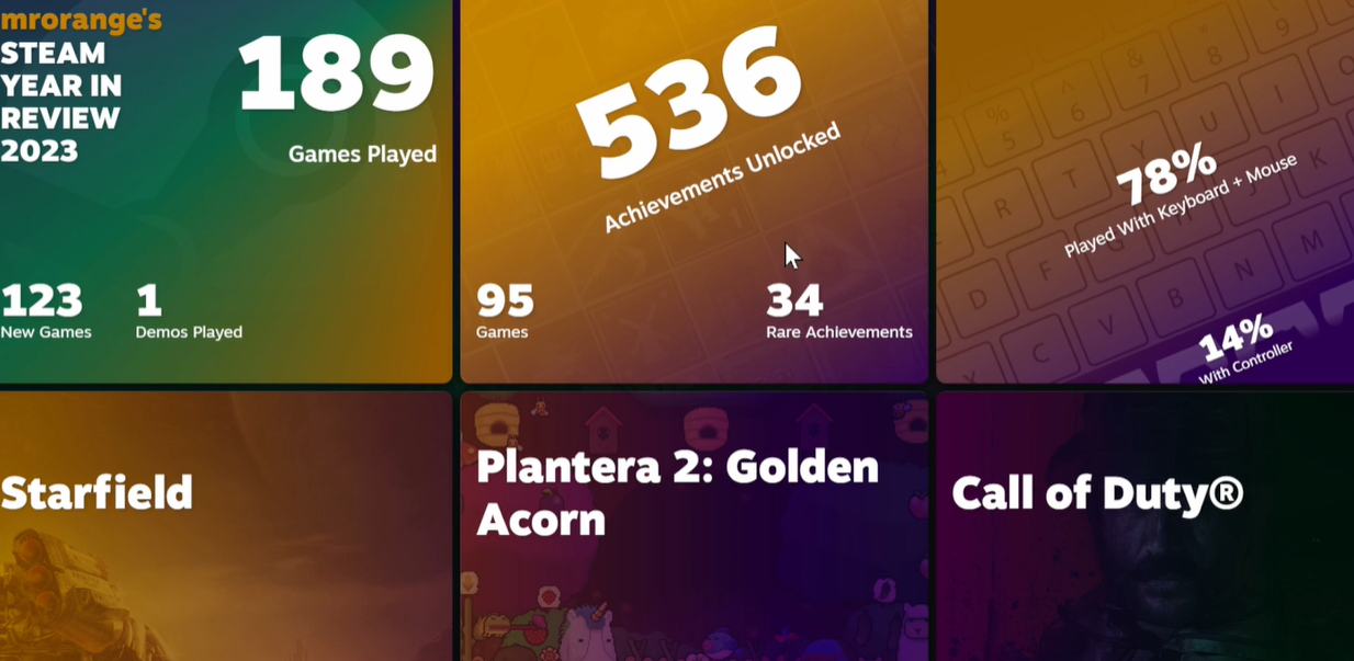 Valve предлагает пользователям Steam подвести игровые итоги 2023 года. Можно посмотреть, сколько и какие игры запускались, получить информацию о заработанных достижениях и не только.