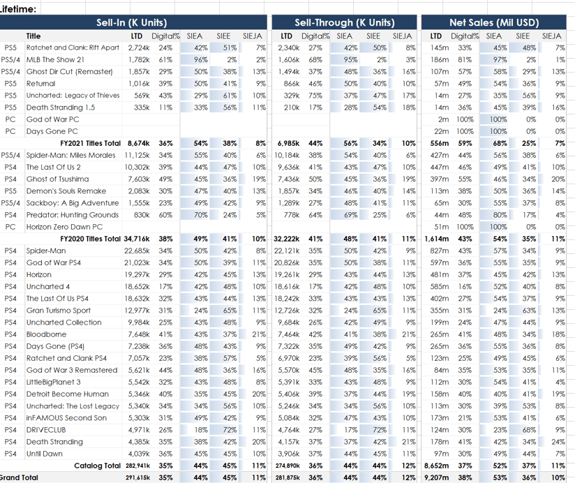 В файлах слитых хакерами были обнаружены данные по продажам игр Sony. В таблицах указаны не только число отгруженных магазинам копий (sell-in), но и фактические продажи пользователям (sell-through). Вся представленная информация актуальна по состоянию на февраль 2022 года: