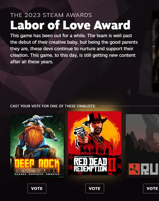 В Steam проходит голосование The Steam Awards 2023. Среди игр-номинантов была замечена Red Dead Redemption 2.