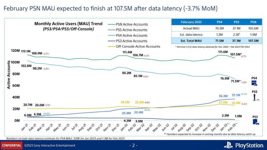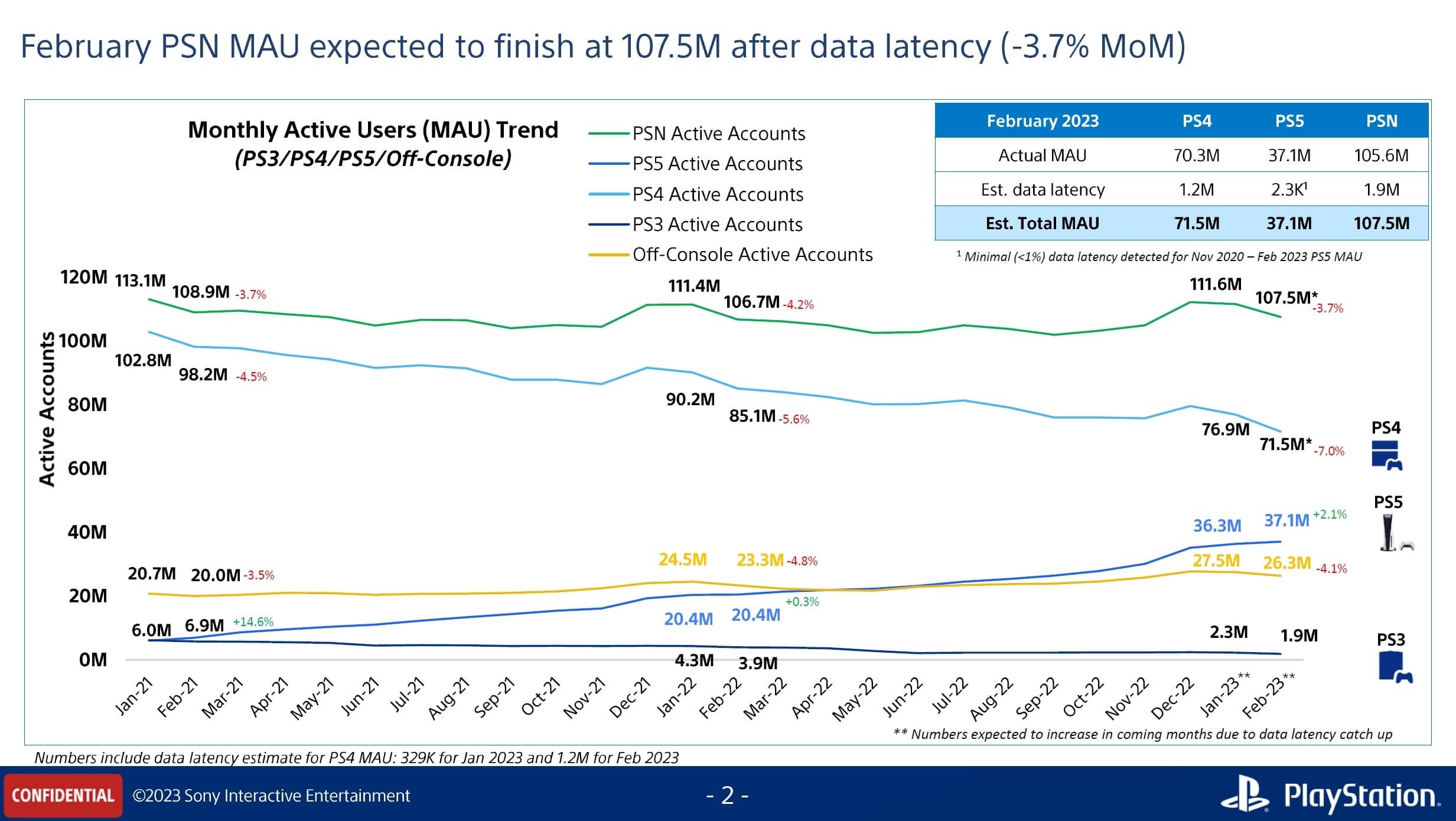 По данным на февраль 2023 года, ежемесячная активность PlayStation 5 составила 37,1 миллиона пользователей.