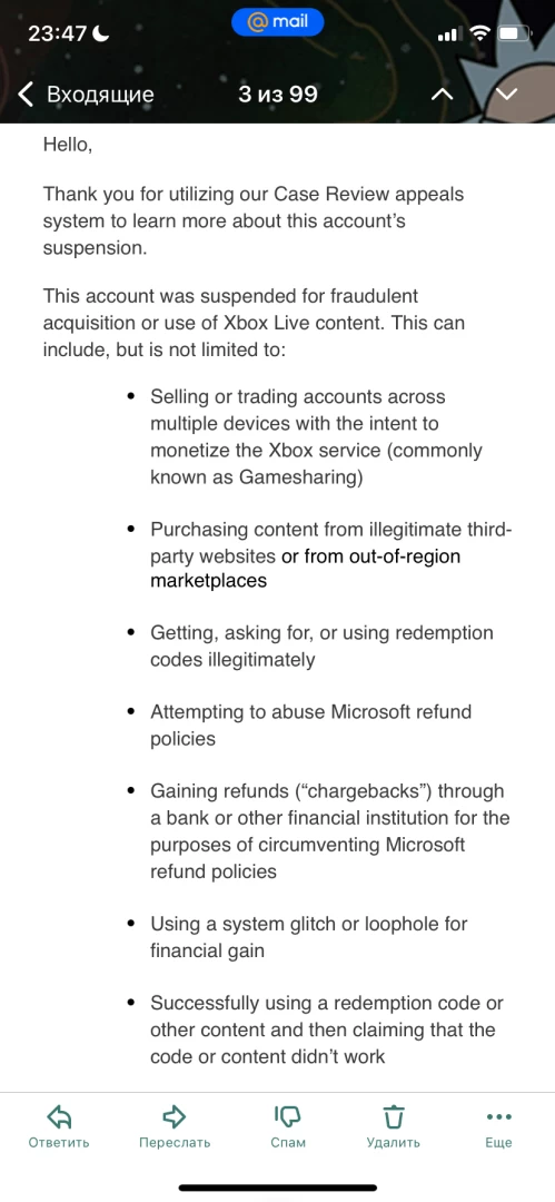 Длительность блокировки разная: кому-то придётся ждать до начала января, а кто-то сможет вернуться только в декабре 2024 года. Бан аккаунта Xbox Series означает, что нельзя записывать геймплей, а также отмечают: «нельзя играть во всё, что требует подключения к Сети (даже если игра с одиночной кампанией)».