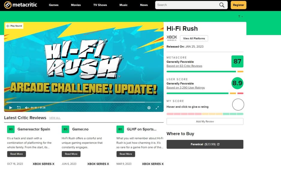 В год громких релизов Xbox, таких как Starfield и Forza Motorsport, Hi-Fi Rush превзошла их с рейтингом в 87% от изданий на Metacritic.