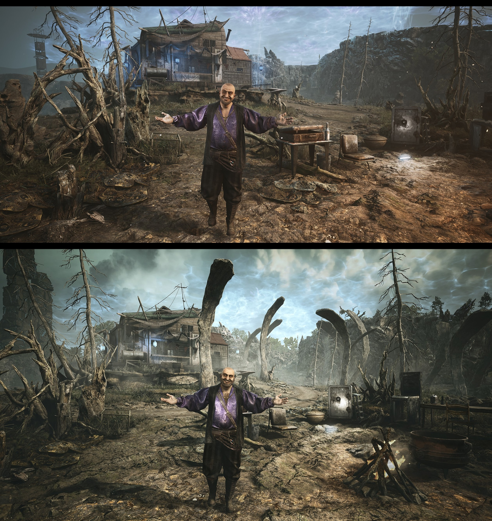 Для сравнения предложили два кадра, на первом представлен момент из трейлера «Пробуждение» — его записали полгода назад. На втором актуальный скриншот PIONER, как заявляется, «прямо из свежей тестовой версии игры».