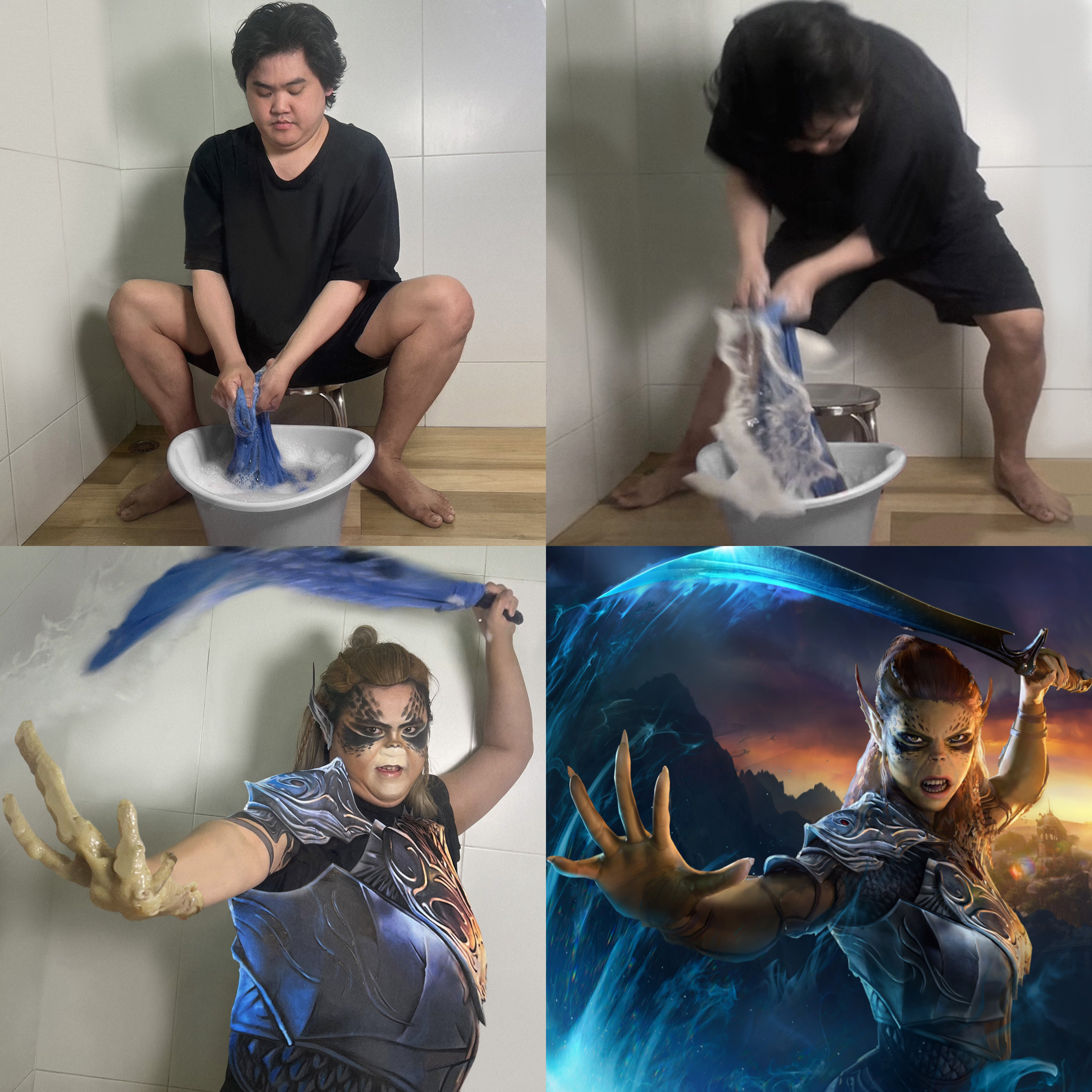 Lowcostcosplay продолжает экспериментировать с образами персонажей Baldur's Gate 3. Недавно досталось огненной Карлах и Астариону, а теперь он взялся за Лаэзель, Минска и Бу.