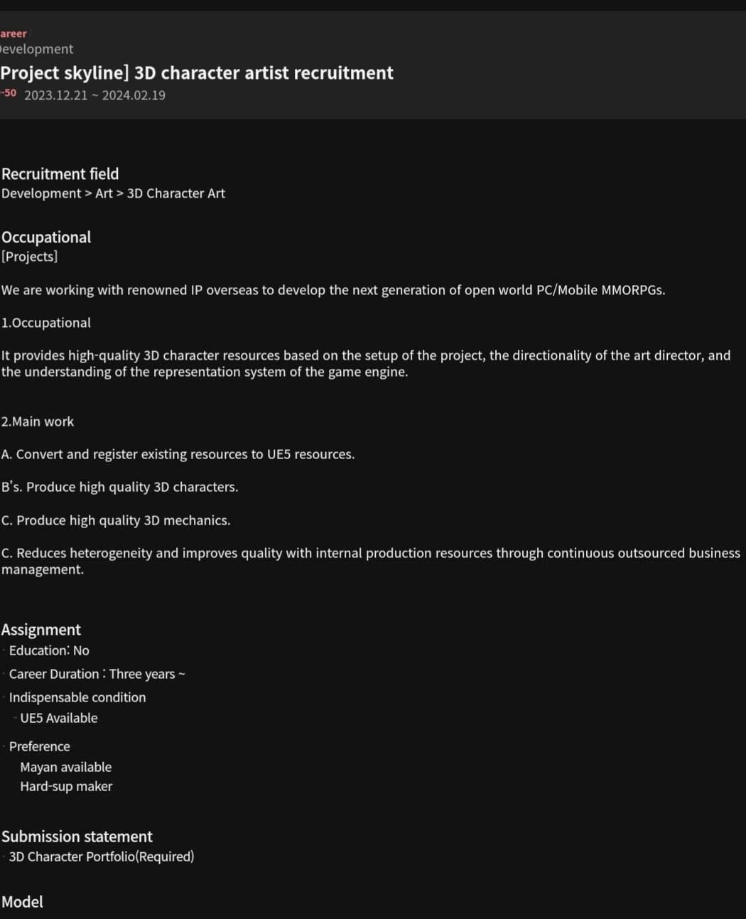 «В настоящее время фактически подтверждено, что игра находится в разработке, поскольку сотрудник NCSoft разместил в LinkedIn список вакансий с логотипом кодового названия, стилизованным под логотип Horizon Games.
