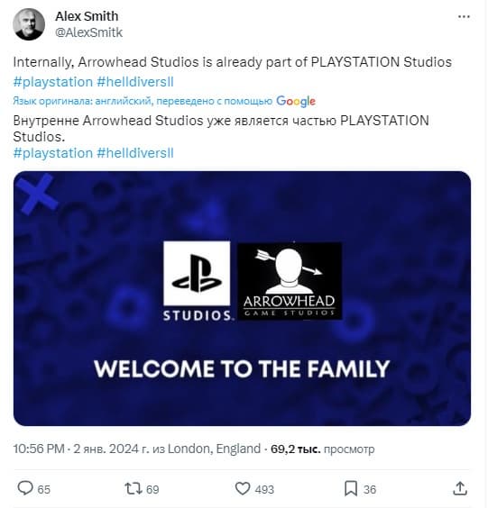 Согласно утечкам, разработчики Helldivers 2 присоединились к PlayStation Studios. Бывший разработчик Bend Studios Алекс Смит считает, что «внутренне» Arrowhead Game Studios уже часть команды PlayStation.