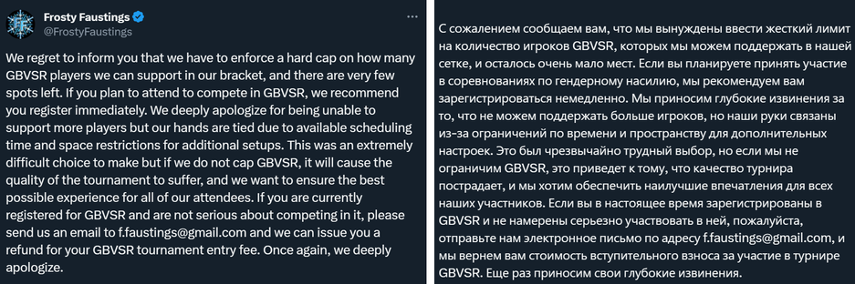 Как пояснили организаторы Frosty Faustings, несоблюдение ограничения, скорее всего, обернётся снижением качества турнира Granblue Fantasy Versus Rising.