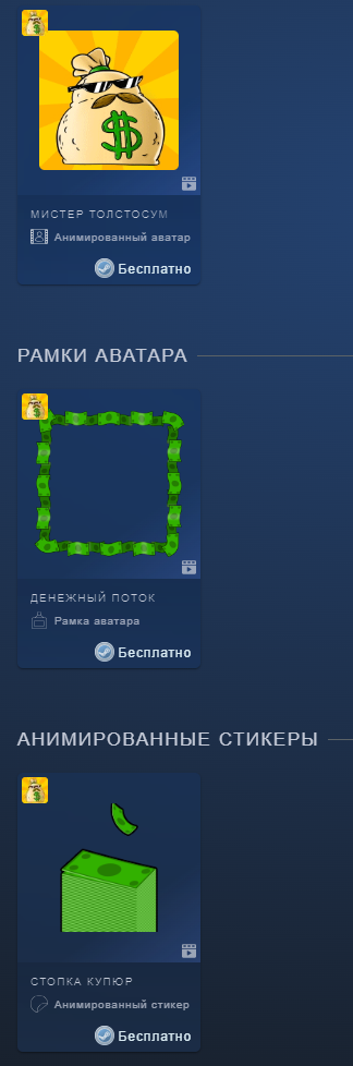 Ранее на тематических распродажах Valve баловала сообщество различными стикерами, которые можно было получить на главной странице распродажи. В ходе «Фестиваля капитализма и экономики» предлагает целую коллекцию подарков, в том числе для украшения профиля Steam: