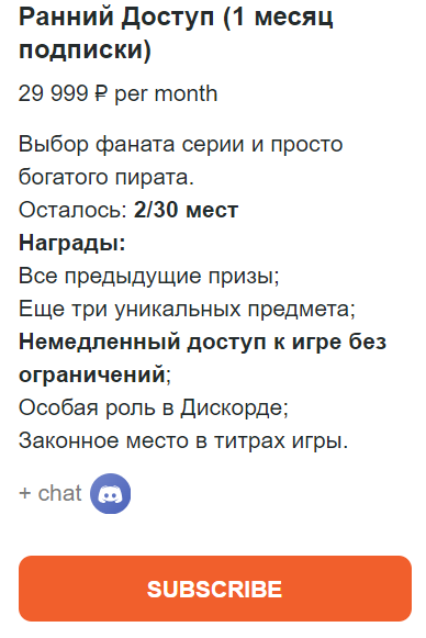 «Это конец. Нет, серьезно, все распродано — включая и вторую партию ключей, экстренно вырванную из резерва. За одни сутки было куплено столько же, сколько в прошлый раз за 10 дней. Результат августа был побит за полчаса. Пиратам, приватирам, негоциантам и офицерам — ахой! …. Новая партия ключей для Уникального Издания приедет аккурат к 8 февраля [с этого дня обладатели получат ранний доступ]. Это не планировалось, но запрос от сообщества просто нереальный, наш же прошлый рекорд по СНГ побит еще раз нами же. Учитывайте, что ограничение по количеству ключей это не наша блажь, а последствие неверной и мною выбранной, организации процесса».